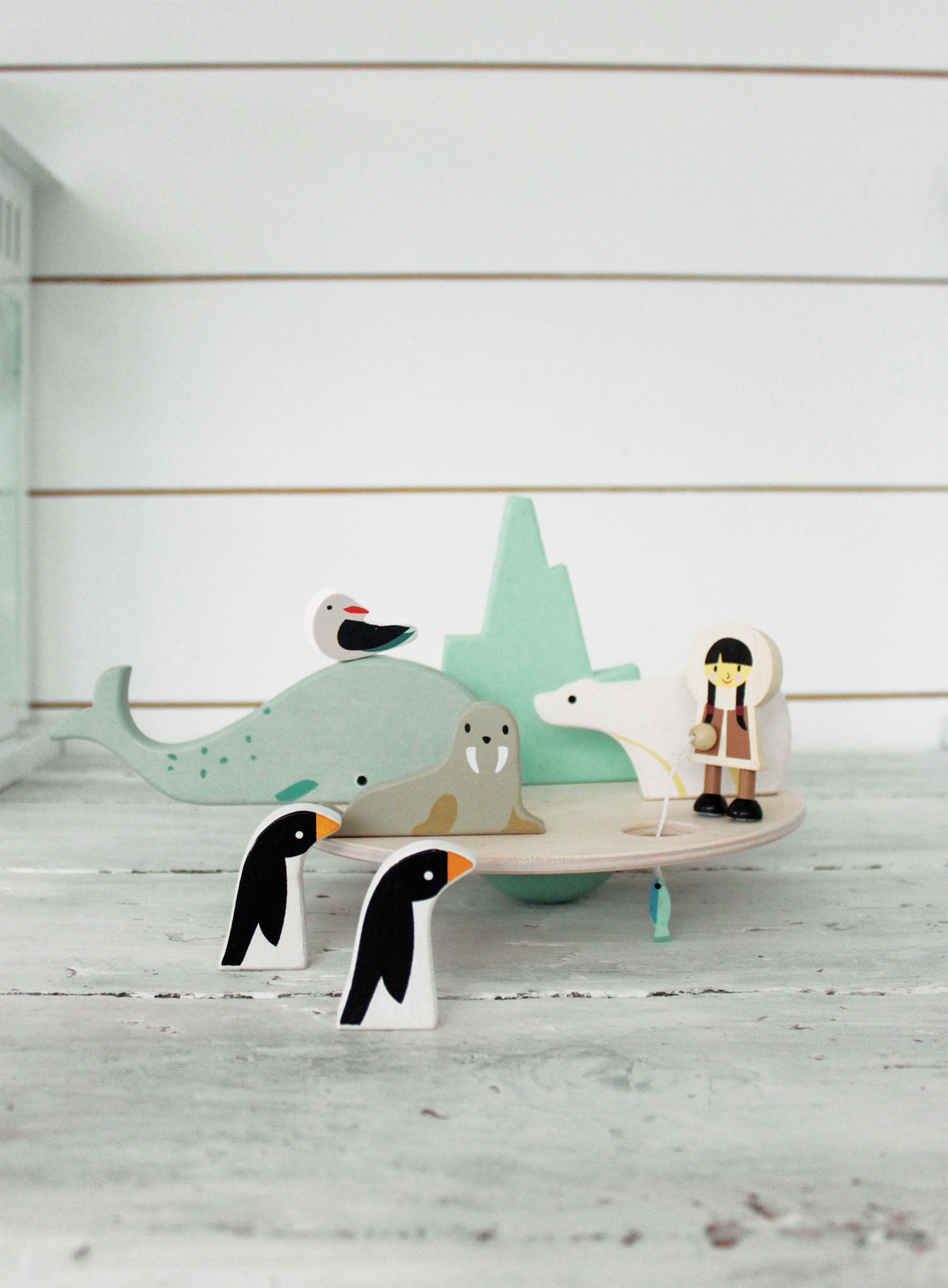 Enhance your balance game with this beautifully crafted icy activity! Stabilize the iceberg, animals, and tiny fisherwoman on the unsteady circular surface.