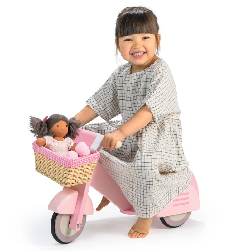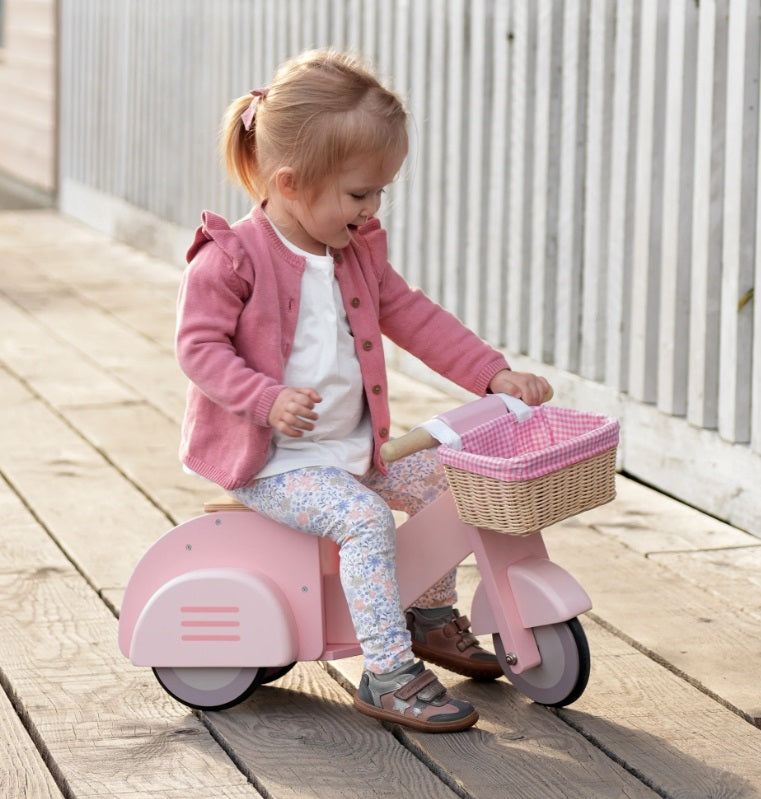 This ride on scooter is as gorgeous as they come, decked out in the most perfect shade of pink! It even comes with a charming basket, lined with pink gingham, for all your grocery or teddy bear needs. Plus, the basket can easily detach with the help of some trusty white tapes. And get this - it also includes a set of beautiful stickers! Perfect for imaginative play and building essential social and language skills.