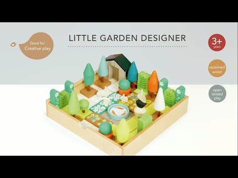 Boasting 64 pieces of solid wood, Little Garden Designer provides users with an endless variety of design possibilities for their gardens. Set includes 7 trees, 2 bushes, 2 terracotta flower pots with removable bushes, 3 flower beds, 6 vegetable patch tiles, 4 sunflowers, 8 grass tiles, 6 patio and 6 path tiles, 4 paving slabs, 4 rabbits, a two-part shed, 4 hedge slabs and a pond. All contained in a beautiful plywood box with a sliding lid.