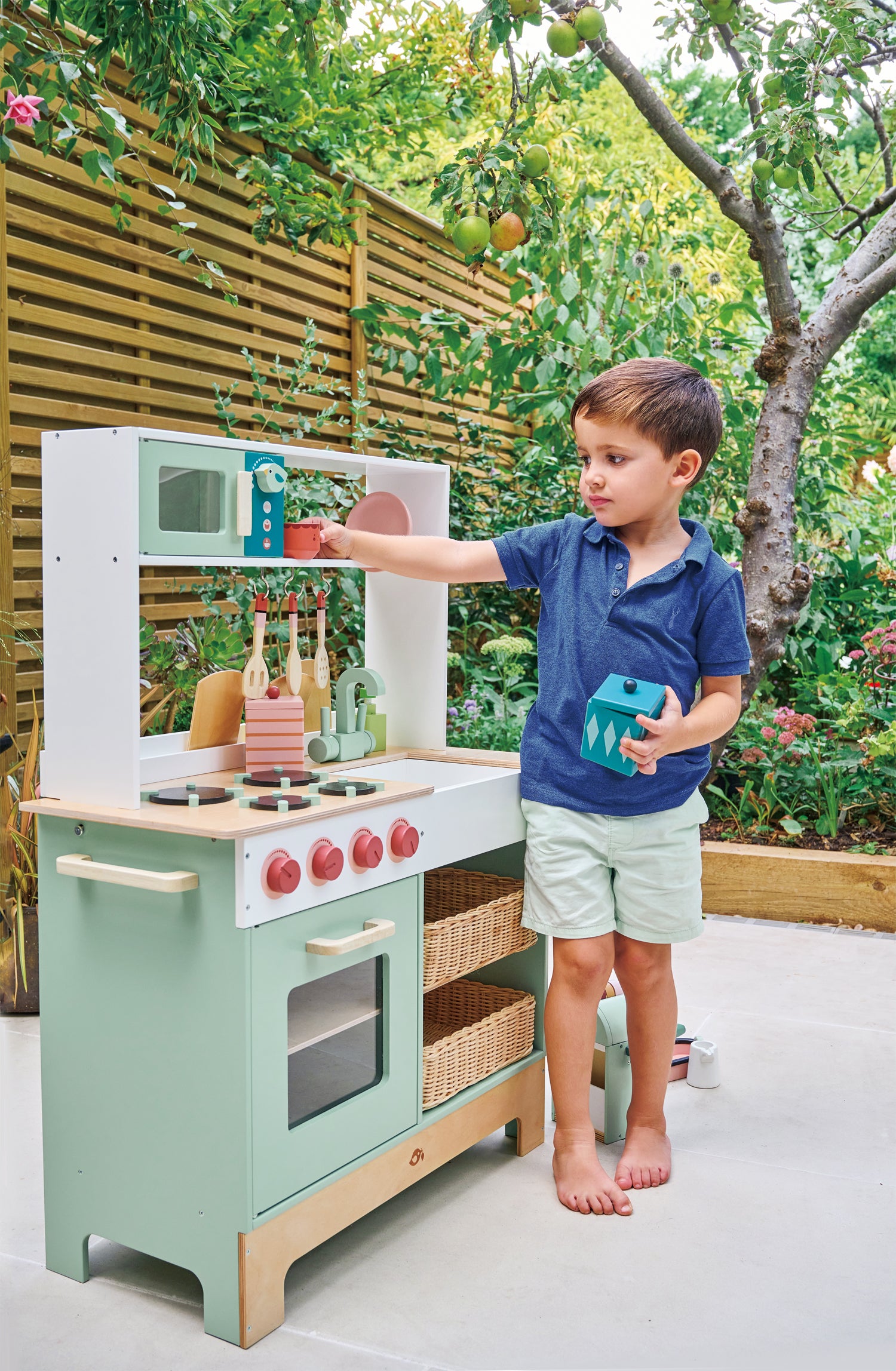 It's no secret that pretend play is an essential part of a child's development as children learn by imagining, observing and doing. We also know the importance of promoting a healthy lifestyle, and this kitchen range teaches just that with a delightful set of herbs, a 2 part fish with veggie garnishes and a soap dispenser - don't forget to wash those little hands!