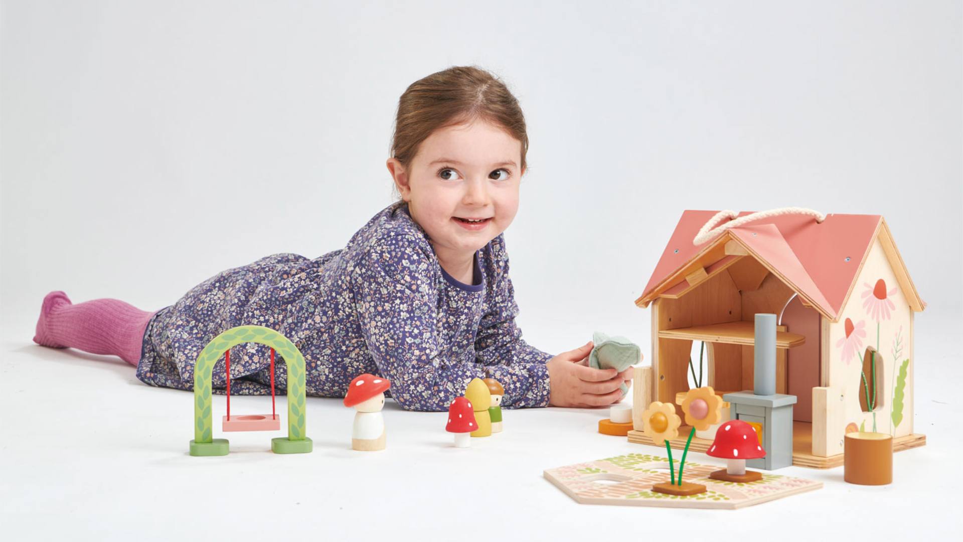 Let's start with crisp musical notes from the xylophone, then the mushroom bell tops jingle as you hit them with your acorn stick. Next, strike some boom boom notes from the tree trunk drums, make the birdie tweets with the birdie whistle, clack the butterfly wings, and sound an echo with the wooden wind chime. Make some fun noises when you run the stick along the hedgehog prickles too! Oh what a lovely little symphony of forest music!